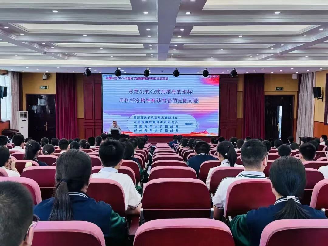 2025年5月20日下午,伟德bv1946官网分党委副书记、工会主席韩树栋走进黄科院附属中学开展科学家精神宣讲。宣讲活动由黄科院附属中学党支部副书记贵鑫主持,高一年级200余名师生参加。